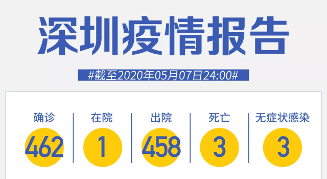 截至5月7日24時(shí),深圳累計(jì)報(bào)告新冠肺炎病例462例。在院治療僅有1例。
