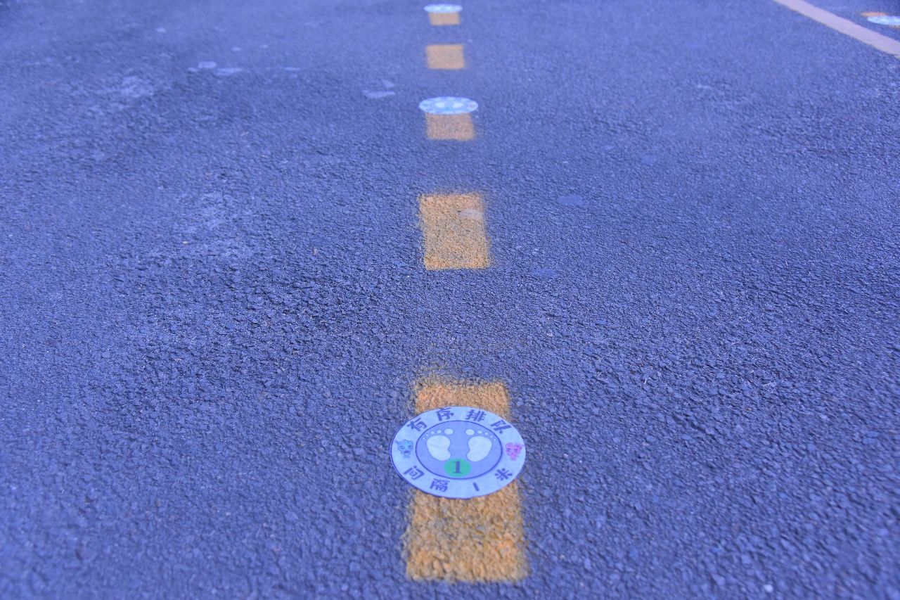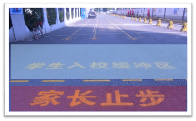 校門口還設(shè)置了,入校緩沖區(qū),家長止步區(qū),三色地貼!請家長們止步!孩子們可以循著地貼,走向?qū)儆谧约旱纳释ǖ溃?/p>