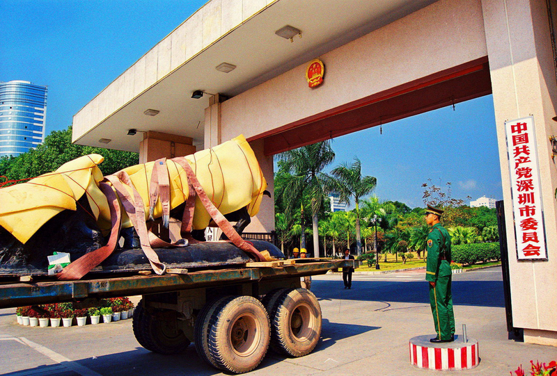 1999年2月6日,深圳“孺子?!钡袼苓w移到深圳市委大院門(mén)前。(組圖)(攝影:韋建誠(chéng))