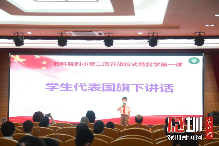 以“喜迎生歸校復(fù)蘇,附小蓓蕾從‘新’綻”為主題的教科院附小2020年春季復(fù)學(xué)第一課準(zhǔn)時開始,各班級的學(xué)生帶著口罩,單人單桌在教室內(nèi),以觀看直播的方式參加典禮。升旗儀式在詹雪蓮主任以及小主持人激情澎湃的聲音中拉開了帷幕。