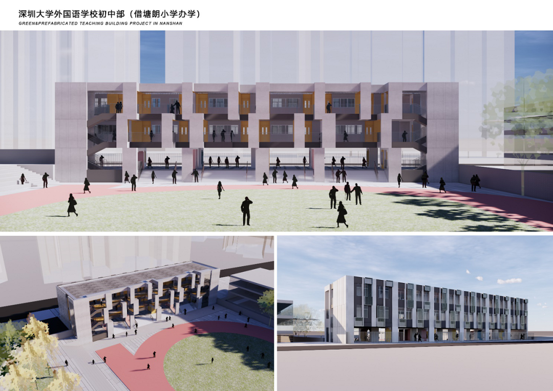 4所學校新建教學樓均為裝配式鋼結構建筑,首層為架空層活動空間,二、三層為教室、教師辦公室及衛(wèi)生間。