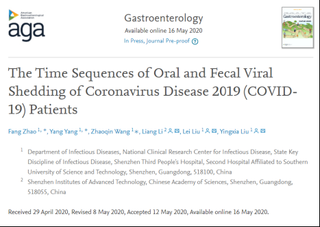 見(jiàn)圳客戶端·深圳新聞網(wǎng)2020年5月20日訊(深圳特區(qū)報(bào)記者 戴曉蓉 通訊員 深三院)國(guó)際知名醫(yī)學(xué)雜志“胃腸病學(xué)(Gastroenterology)”于5月16日在線重磅推出了深圳市第三人醫(yī)院(深圳三院)關(guān)于新冠肺炎患者腸道排毒特征及規(guī)律的研究論文《The Time Sequences of Oral and Fecal Viral Shedding of Coronavirus Disease2019(COVID-19) Patients》。該雜志的學(xué)術(shù)影響力在胃腸病學(xué)和肝病專業(yè)領(lǐng)域排名第一。