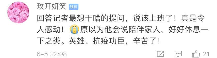 網(wǎng)友紛紛致敬:“辛苦了,好好休息休息!”“向您表示衷心感謝”。