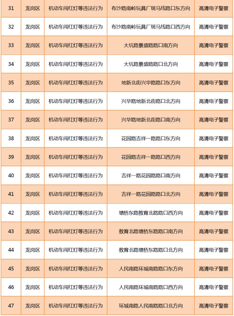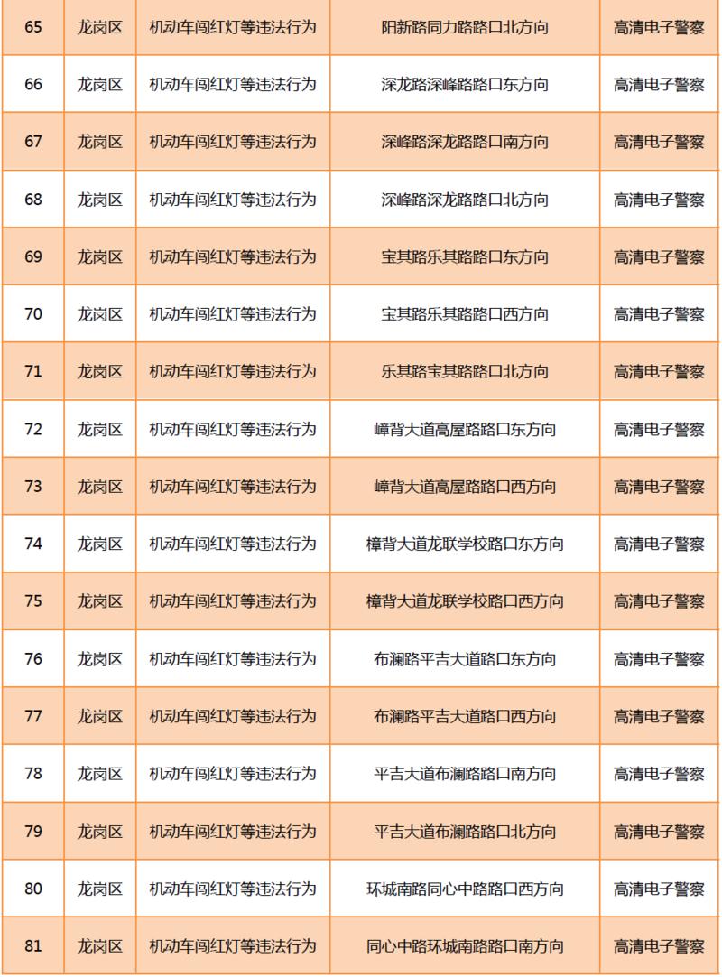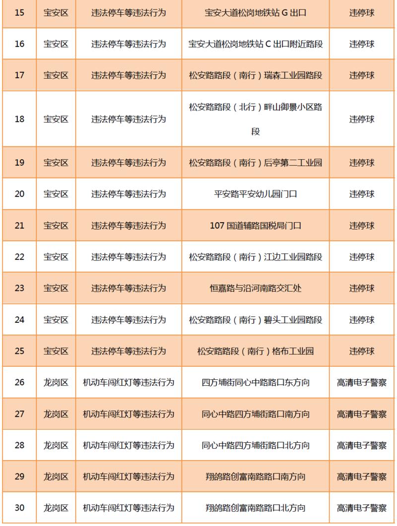見圳客戶端?深圳新聞網(wǎng)2020年6月9日訊(晶報(bào)記者 鄧裴裴)6月9月,深圳市公安局交通警察局發(fā)布關(guān)于公布啟用190套交通技術(shù)監(jiān)控設(shè)備的公告,在福田區(qū)、羅湖區(qū)、寶安區(qū)、龍崗區(qū)、光明區(qū)啟用合計(jì)190套交通技術(shù)監(jiān)控設(shè)備,其中包括閉路電視、違停球、高清電子警察,類型為不按規(guī)定方向行駛或變更車道等違法行為和機(jī)動(dòng)車闖紅燈等違法行為。