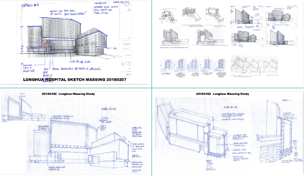 由于場地條件苛刻,設(shè)計難度高,項目設(shè)計團隊從設(shè)計初期便全程引用BIM軟件,對場地關(guān)系、空間尺度、可實施性等方面均進行強有力的把控,同時在立面關(guān)系、體塊穿插比例等方面,通過手繪草圖及實體模型等方式進行精心推敲,從多維度對設(shè)計進行把控。