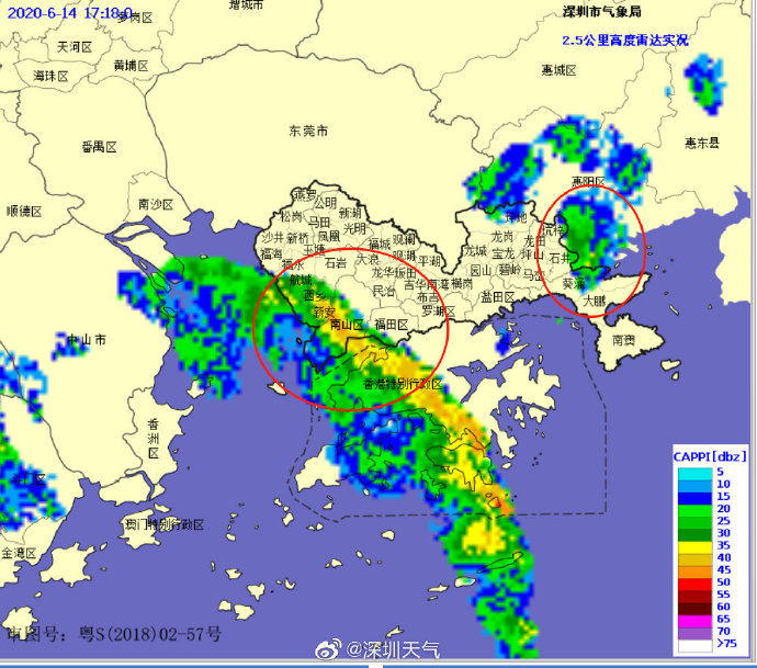 深圳市氣象臺(tái)于2020年06月13日14時(shí)45分在全市發(fā)布雷電預(yù)警,預(yù)計(jì)2小時(shí)內(nèi)全市將受雷電影響,市民停留在安全地方;按照防御預(yù)案停止戶外易燃易爆危險(xiǎn)作業(yè),并加強(qiáng)?;瘓?chǎng)所安全管理。