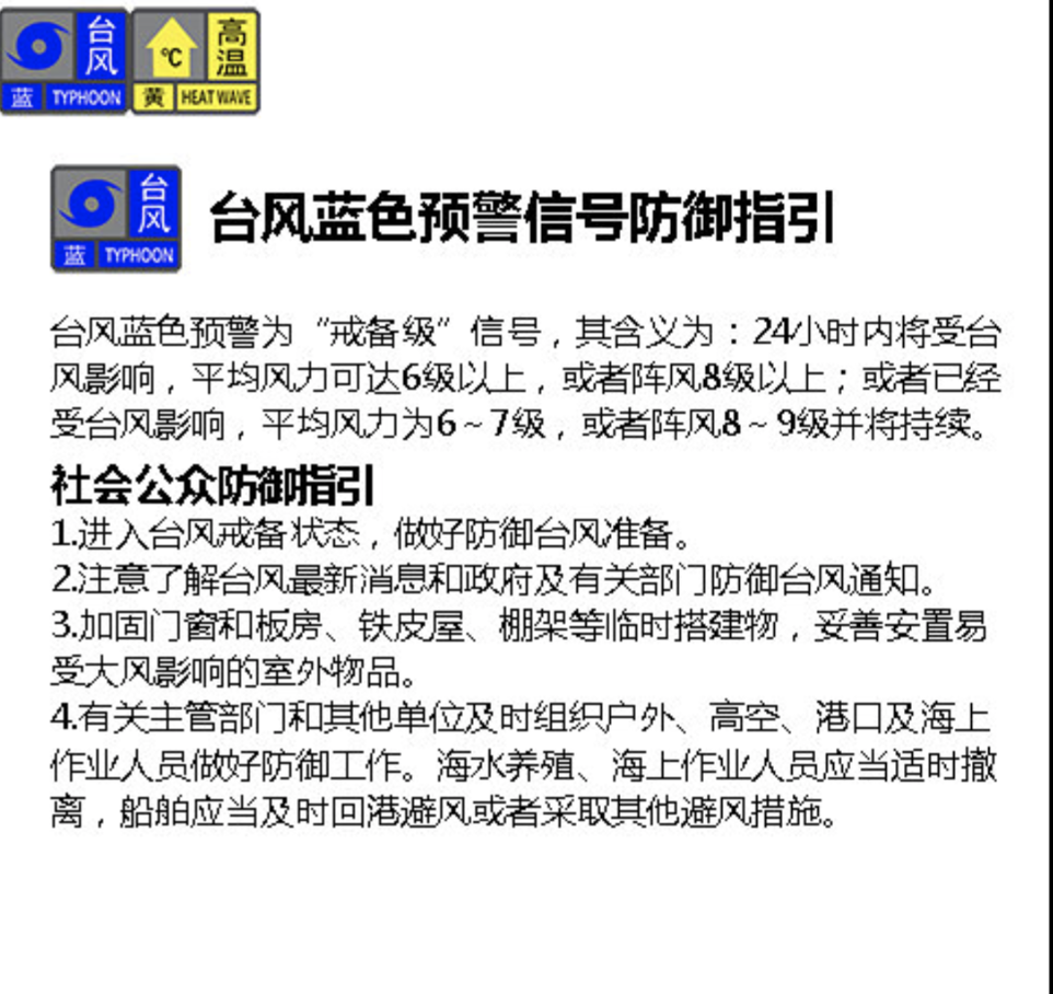 10:30臺(tái)風(fēng)預(yù)警信號(hào)生效情況