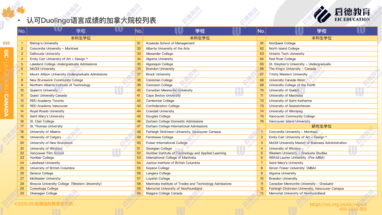 據(jù)了解,目前多鄰國(guó) Duolingo English Test語(yǔ)言成績(jī)被加拿大高校的76個(gè)本科生學(xué)位、18個(gè)研究生學(xué)位,及20所中學(xué)所認(rèn)可。此外,加拿大學(xué)術(shù)英語(yǔ)測(cè)試 CAEL考試已于2019年1月在中國(guó)內(nèi)地開(kāi)放考試,具有出分快(8天),聽(tīng)說(shuō)讀寫(xiě)一次性完成,無(wú)須額外口語(yǔ)面試等特點(diǎn),目前北上廣均設(shè)有考場(chǎng)。