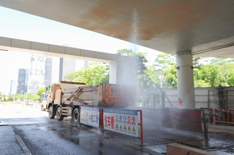 相信很多市民朋友對自卸車(俗稱“泥頭車”)的印象就是又吵又臟,對此記者在現(xiàn)場看到,福田區(qū)的工地已經(jīng)用上電動自卸車,跟燒柴油的自卸車相比,不僅節(jié)能環(huán)保,且車子運行的噪音也非常小。不僅如此,為了防止自卸車“帶泥上路”,工地的出口處還設有車輛自動沖洗系統(tǒng),每輛泥頭車在駛出工地之前,都要經(jīng)歷一次“全身淋浴”,徹底沖干凈車身以及輪胎上的泥土之后才能離開。
