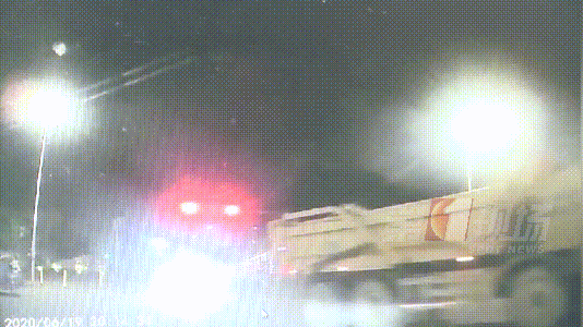 事故發(fā)生在6月19號晚上8點多,可以看到黑色小車在信號燈開始閃爍的時候開過光僑路路口,正好被一輛左轉(zhuǎn)泥頭車擋住了路。