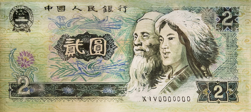 第三套人民幣2元票面總體設計手繪原大效果圖。
