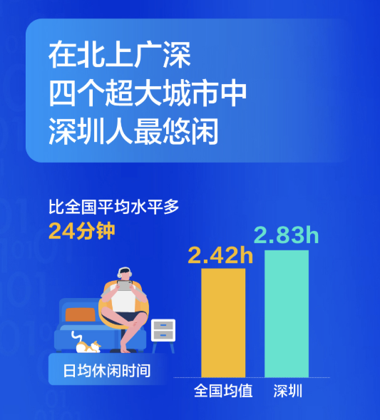 曾經(jīng)有一個(gè)詞叫做“深圳速度”,代表高效率高速度高質(zhì)量的發(fā)展。而如今,大調(diào)查卻發(fā)現(xiàn)了這里也別有一番慢生活,在北上廣深四個(gè)超大城市中,深圳人最悠閑,日均休閑時(shí)間(2.83小時(shí))高出全國(guó)平均水平24分鐘。