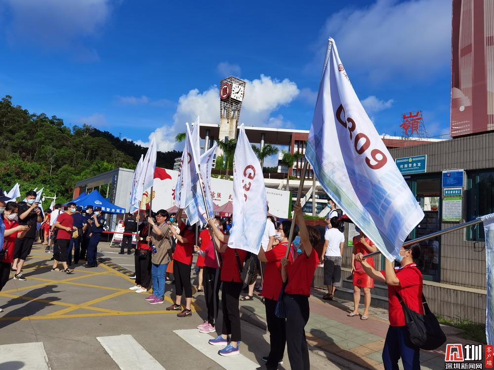 【深圳中學(xué)】身穿紅色旗袍的家長(zhǎng)們預(yù)祝考生們旗開(kāi)得勝。