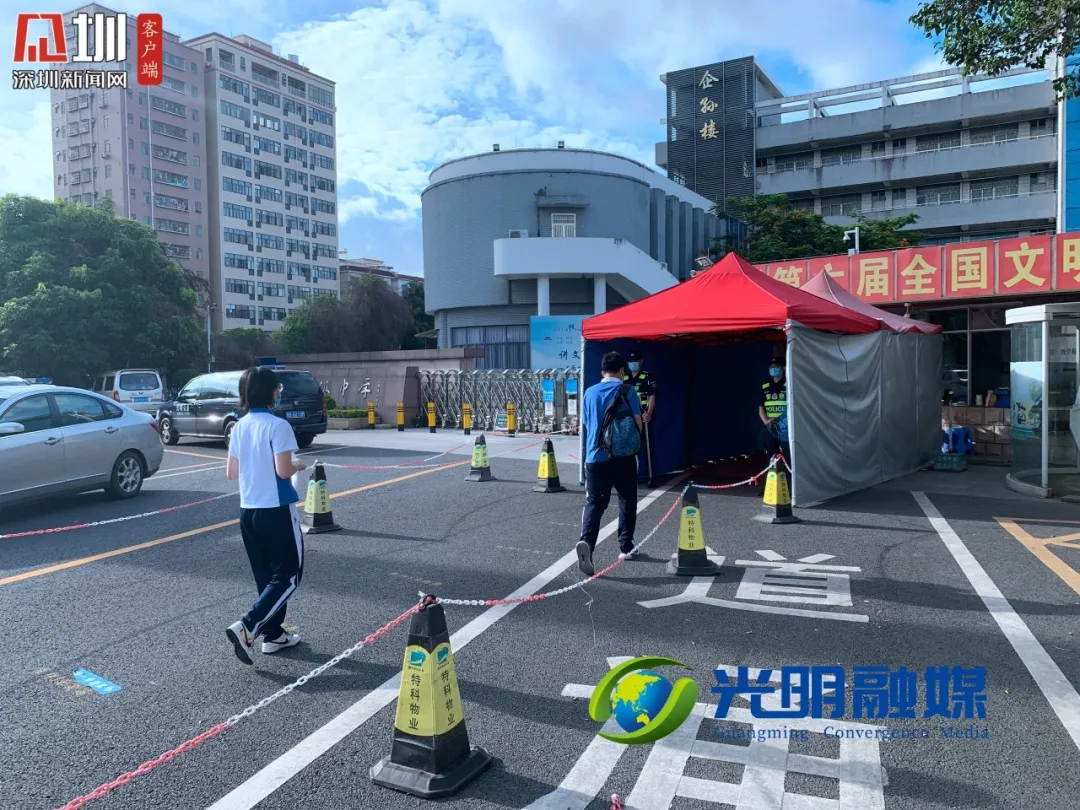 早上七點(diǎn)十五分,記者來(lái)到光明區(qū)高級(jí)中學(xué)考點(diǎn),學(xué)生已經(jīng)開始有序走入考場(chǎng)。