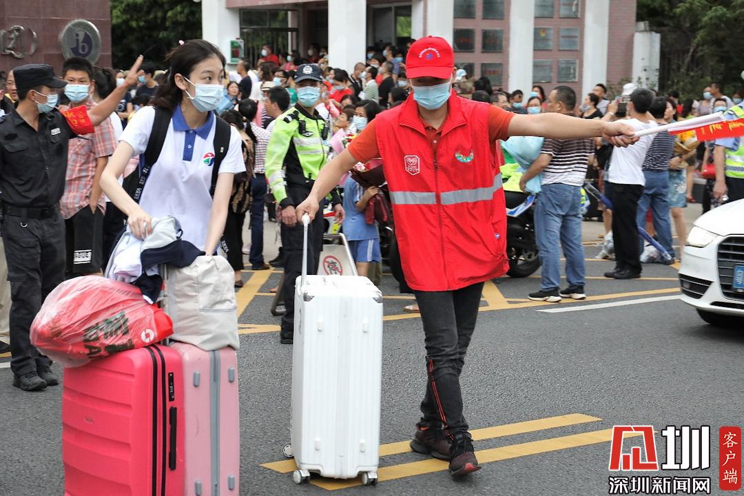 深圳高級中學(xué)考點(diǎn)外考生腳步輕盈走出考場,有說有笑。