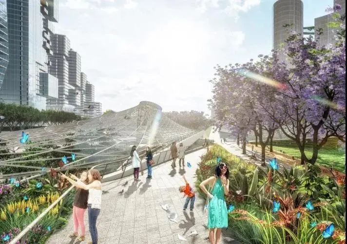 ▲中央綠軸中段—車(chē)站廣場(chǎng)