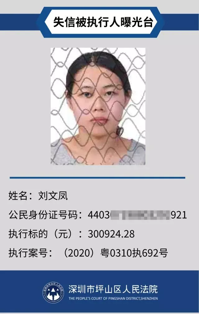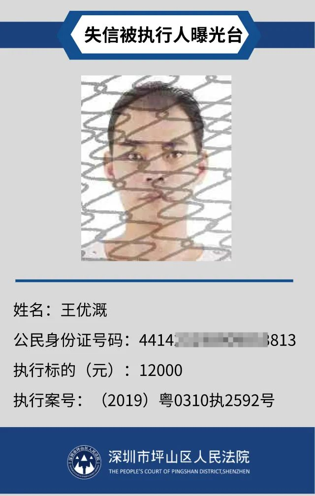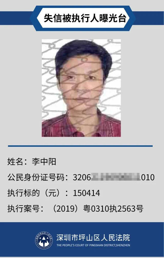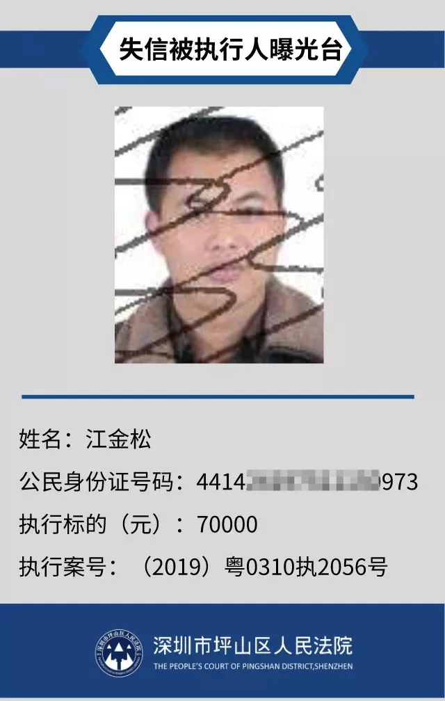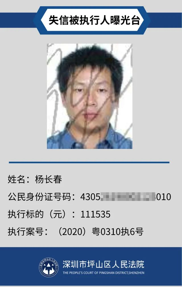 為督促被執(zhí)行人自覺(jué)履行生效法律文書(shū)確定的義務(wù),推進(jìn)社會(huì)誠(chéng)信體系建設(shè),深圳市坪山區(qū)人民法院根據(jù)《中華人民共和國(guó)民事訴訟法》第二百五十五條、《最高人民法院公布失信被執(zhí)行人名單信息若干規(guī)定》第一條和第七條之規(guī)定,現(xiàn)對(duì)31名失信被執(zhí)行人予以公布。名單信息根據(jù)案件結(jié)案情況及時(shí)更新,歡迎舉報(bào)失信被執(zhí)行人行蹤及財(cái)產(chǎn)線(xiàn)索,相關(guān)信息核實(shí)請(qǐng)聯(lián)系深圳市坪山區(qū)人民法院執(zhí)行局。
