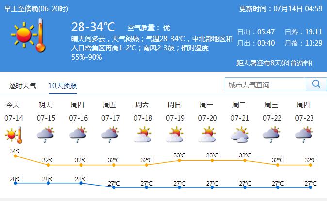 見(jiàn)圳客戶(hù)端·深圳新聞網(wǎng)2020年7月14日訊 14日晴天間多云,天氣悶熱;氣溫28-34℃,中北部地區(qū)再高1-2℃;南風(fēng)2-3級(jí);濕度55%-90%。15-17日多云,有短時(shí)(雷)陣雨;18-20日天氣悶熱,局地偶有短時(shí)陣雨。