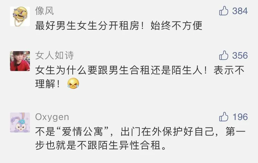 說到合租,請(qǐng)一定要謹(jǐn)慎選擇室友,尤其是男女合租,安全問題不容忽視,凡事多留個(gè)心眼,一定要保護(hù)好自己。