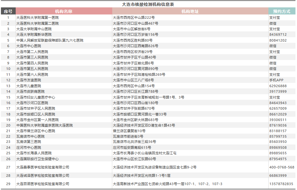 7月24日起,大連市人員原則上實施非必要不離連,確需離連的,須持7日內核酸檢測陰性證明;冷藏冷凍肉品、海產品企業(yè)或場所從業(yè)人員盡快實施核酸檢測。大連市對外核酸檢測機構現有29家,機構地址和預約方式,市民可登錄大連市衛(wèi)生健康委官方網站進行查詢。