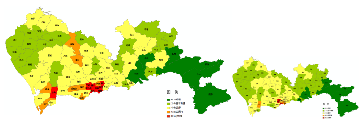 圖3 預計臺風季工作日(左)、普通工作日(右)晚高峰全市主要街道交通運行狀態(tài)圖