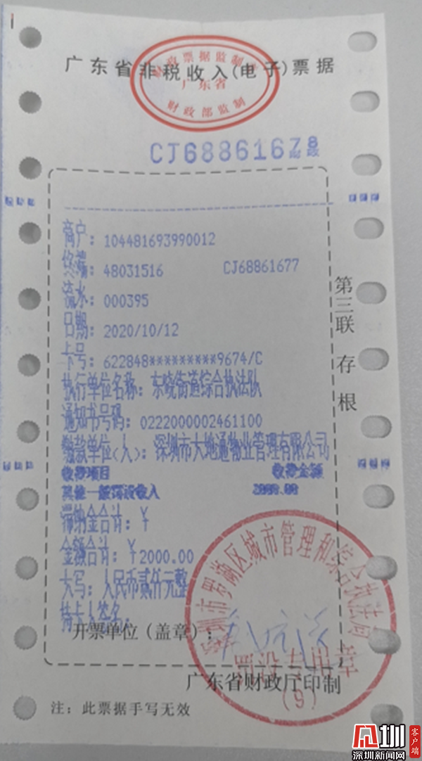 深圳新聞網(wǎng)訊 (見(jiàn)圳客戶(hù)端、深圳新聞網(wǎng) 記者 彭桂紅 通訊員 吳清慶)9月1日,《深圳市生活垃圾分類(lèi)管理?xiàng)l例》正式實(shí)施,經(jīng)過(guò)一個(gè)月的執(zhí)法警示期,10月起,深圳垃圾分類(lèi)進(jìn)入集中執(zhí)法階段,對(duì)不開(kāi)展垃圾分類(lèi)等行為正式開(kāi)罰。記者10月14日獲悉,深圳市羅湖區(qū)東曉街道執(zhí)法隊(duì)10月12日,開(kāi)出轄區(qū)首張物業(yè)罰單,對(duì)深圳市大地通物業(yè)管理有限公司因垃圾分類(lèi)投放點(diǎn)和收集容器未保持整潔立案查處,作出罰款人民幣2000元的行政處罰。行政處罰相對(duì)人已依法繳納罰款。