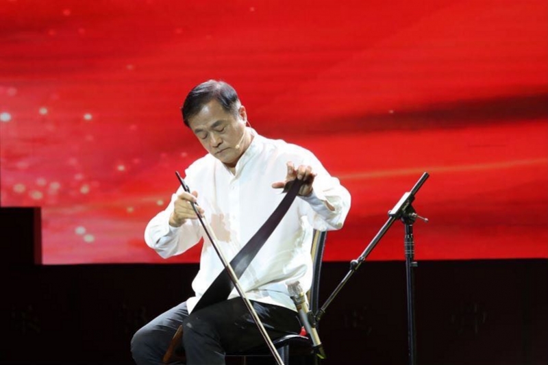 隨后,《鋸琴藝術(shù)》傳承人李元慶在不斷變換鋸片彎曲角度、拉動馬尾弓期間,奏出一首長達近4分鐘的悠揚樂曲。他說,自己拉了30年鋸琴,希望讓更多人了解這門非遺藝術(shù)。在他的鼓勵下,觀眾席里兩名小學(xué)生舉手上臺,用鋸琴敲出長短不一的音符。