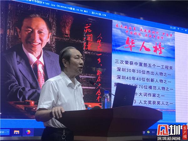 四十載波瀾壯闊、四十載砥礪前行,“春天的故事”見證了深圳的騰飛。此次活動還特別邀請到了《春天的故事》詞作者、深圳經(jīng)濟特區(qū)建立40周年創(chuàng)新創(chuàng)業(yè)人物和先進模范人物、羅湖區(qū)文學藝術(shù)界聯(lián)合會創(chuàng)作員蔣開儒作專題報告。蔣開儒創(chuàng)作了《春天的故事》《走進新時代》《中國夢》《我的中國節(jié)》等唱響國內(nèi)外的歌曲,他聲情并茂地講述了自己創(chuàng)作歌曲的故事,向大家分享了自己對祖國的熱愛、對人生的感悟、對夢想的追求、對未來的展望。