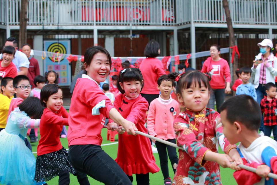 “加油!加油!”家長與孩子一起參加的拔河比賽讓全場氣氛沸騰,套圈、貼鼻子等活動(dòng),更是讓大人們體驗(yàn)了一把兒時(shí)的歡樂。孩子們身系紅紅的綢帶、揮舞著漂亮的手絹,伴隨鑼鼓、嗩吶、镲奏出的動(dòng)感曲調(diào)扭著秧歌,更是將現(xiàn)場氛圍推向了高潮。