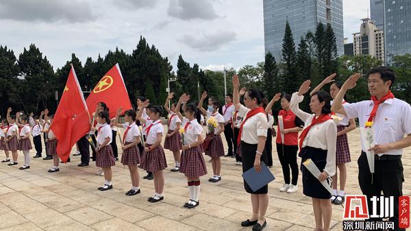 最后,全體參與人員在羅湖區(qū)東湖街道翠鵬社區(qū)黨委副書記甘麗麗及東曉小學(xué)少先隊大隊長的帶領(lǐng)下重溫入黨、入隊誓詞,堅定的誓言響徹每一個角落。