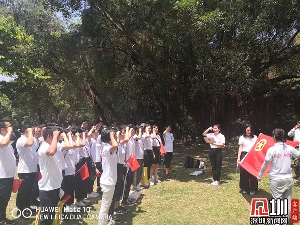 在鄧小平銅像廣場,大家精神抖擻、意氣風(fēng)發(fā),手持飄揚的旗幟,再一次舉起右手,莊嚴(yán)宣誓。