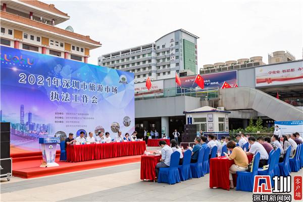 見圳客戶端·深圳新聞網(wǎng)4月30日訊(記者 李慧 通訊員 羅小燕)4月29日下午,深圳市旅游市場執(zhí)法工作會議在羅湖口岸廣場召開,省文化和旅游廳黨組成員、副廳長曾曉峰、市文化廣電旅游體育局副局長陳紹華出席了會議,市公安局、市口岸辦、各區(qū)(新區(qū))文化廣電旅游體育局、深汕特別合作區(qū)公共事業(yè)局、市旅游協(xié)會、市文化市場行業(yè)協(xié)會負(fù)責(zé)人及全市100家旅游企業(yè)代表等共200多人參加了會議。