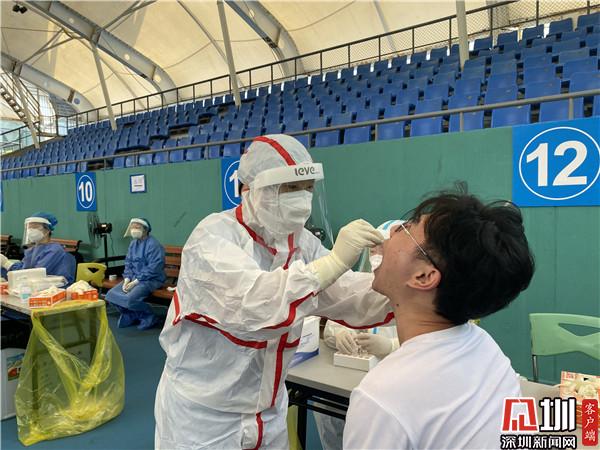 “根據(jù)當(dāng)前疫情防控工作要求,結(jié)合羅湖區(qū)實(shí)際情況,我們在28日啟用去體育館這個臨時采樣點(diǎn),現(xiàn)場我們可以看到整個采樣工作是很有秩序的,因?yàn)槲覀冊诿總€時間段安排不同的人群進(jìn)行采樣,所以不會出現(xiàn)排隊(duì)擁擠等情況。”羅湖區(qū)衛(wèi)健局公共衛(wèi)生和職業(yè)衛(wèi)生科科長江正談道,羅湖成立了一支擁有1200人的平戰(zhàn)結(jié)合應(yīng)急采樣隊(duì),隨時為疫情防控工作做好備戰(zhàn)準(zhǔn)備,一旦有需要,隨時就可以投入戰(zhàn)斗?!艾F(xiàn)在這個臨時檢測點(diǎn)每天的采樣量大概在5000個左右,我們很有信心,能夠打贏這場戰(zhàn)‘疫’?!苯f。