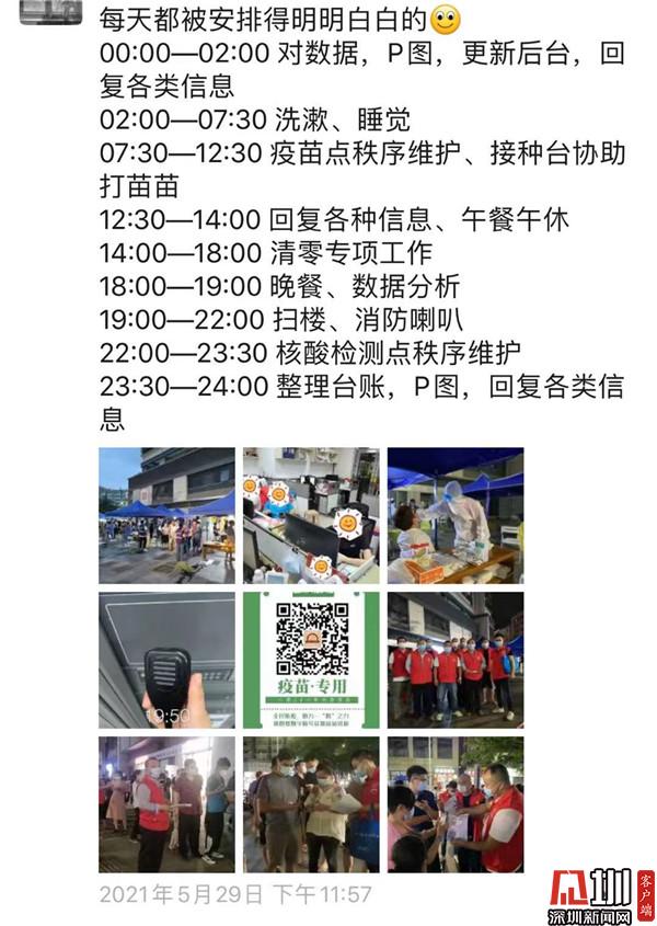 這是這段時間邱蜀鈞的一天的時間安排,白天對疫苗點進行秩序維護、在接種臺協(xié)助打疫苗、整理轄區(qū)清零專項工作等,晚上去居民樓掃樓、進行數(shù)據(jù)分析,回去之后整理臺賬,編輯公眾號傳達最新情況,是名副其實的全能型時間管理大師。