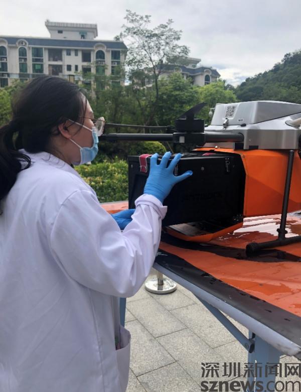 羅湖醫(yī)院集團(tuán)醫(yī)學(xué)檢驗(yàn)中心位于布吉,集團(tuán)有5家醫(yī)院,34家社康中心,這些醫(yī)療單位分散在羅湖區(qū)各處,平時(shí)檢驗(yàn)標(biāo)本的運(yùn)輸都由專用車在各醫(yī)療單位收集后運(yùn)到檢驗(yàn)中心進(jìn)行檢測。本次進(jìn)行實(shí)驗(yàn)的羅湖中醫(yī)院到羅湖醫(yī)院集團(tuán)檢驗(yàn)中心的地面距離約13.7公里,無人機(jī)運(yùn)輸?shù)目罩芯嚯x約8.4公里?!拔覀兤綍r(shí)開車運(yùn)送標(biāo)本至少要30分鐘,遇到堵車時(shí)間還要更長。無人機(jī)運(yùn)送的速度每小時(shí)約60公里,不用等紅綠燈、不會(huì)擁堵,平均來說,可以比地面交通運(yùn)輸快50-60%?!绷_湖醫(yī)院集團(tuán)副院長、檢驗(yàn)中心主任張秀明介紹。
