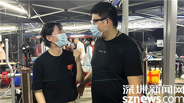 讀特客戶端·深圳新聞網(wǎng)2021年6月22日訊(記者 郭含笑)“我沒事,稍作休息就可以繼續(xù)投入工作了?!?/span>6月20日下午,在深圳市羅湖區(qū)東湖街道布心花園核酸檢測點,羅湖區(qū)婦幼保健院兒童保健科康復(fù)治療師李忠麗在核酸檢測現(xiàn)場突發(fā)暈眩,隨即被扶至一旁休息,隨后由其丈夫羅湖區(qū)婦幼保健院兒童保健科康復(fù)治療師任雨替補(bǔ)上陣。