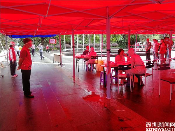 “今天的任務(wù)不會因為暴雨而減輕?!薄耙咔榫褪敲睿瑳]有休息可言?!?.....上午9點(diǎn),紅色的雨棚已在京基100樓下陸續(xù)搭起,這是深圳市羅湖區(qū)桂園街道老圍社區(qū)核酸檢測臨時點(diǎn),不少醫(yī)護(hù)人員、義工社工紛紛集結(jié),開始忙碌的工作。