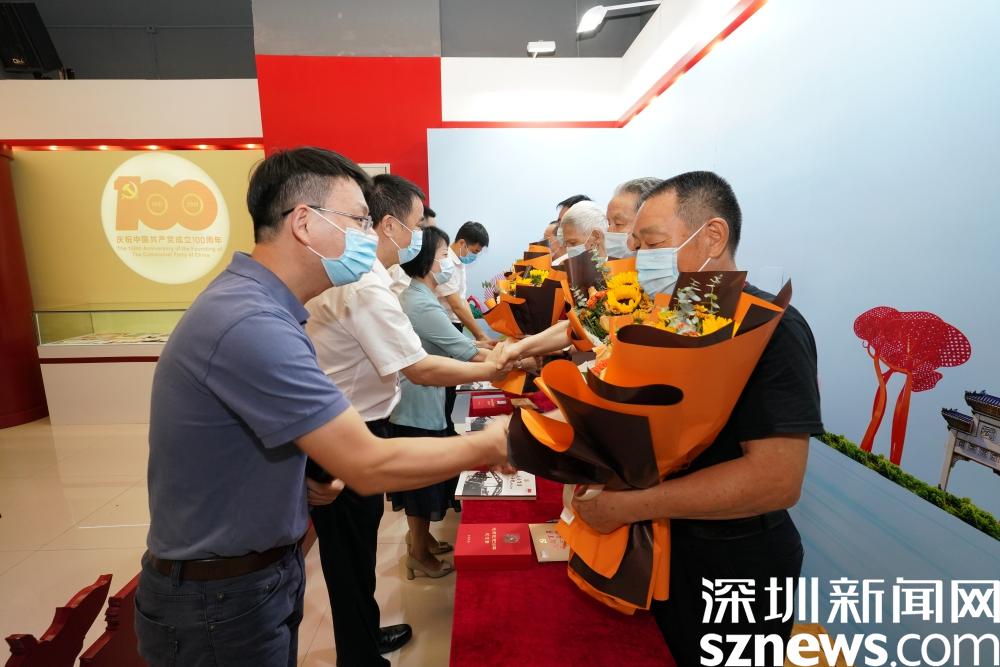 羅湖區(qū)委常委、宣傳部部長呂漫妮,羅湖區(qū)委組織部部務委員、人才工作局局長曹雙璽,羅湖區(qū)委宣傳部副部長、區(qū)文明辦主任張華嘉,深圳報業(yè)集團副總經理朱永峰,清水河街道黨工委書記魏剛,清水河街道黨工委副書記劉曉春等共同為展覽揭幕。部分老兵代表出席了本次活動, 并向嘉賓和學生代表簽名送書。開幕式后,羅湖區(qū)、清水河街道和深圳報業(yè)集團領導為街道 " 光榮在黨 50 年 " 紀念章獲得者代表黨員頒發(fā)獎章,為街道辦 " 兩優(yōu)一先 " 榮譽獲得者代表頒獎。