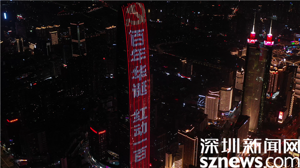 隨著參會領導和嘉賓按下儀式啟動鍵,羅湖地標建筑京基100被“點亮”,滾動顯示“百年華誕 紅動一百”、“崢嶸歲月 百年風華”祝福語,噴泉廣場亮如白晝,映入觀眾眼中,現(xiàn)場發(fā)出陣陣贊嘆聲,將慶祝的氛圍推向高潮。