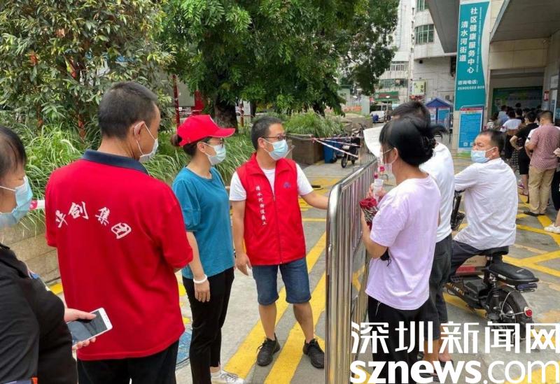 據(jù)了解,在本次疫情防控期間,羅湖區(qū)委下沉干部主要負責坭崗社區(qū)合圍各個卡口,他們每天忙于測溫、查驗行程軌跡、查驗健康碼、出入車輛管理、回應居民咨詢,為坭崗社區(qū)筑造一條堅實的防線。除此之外,來自深圳報業(yè)集團的工作隊也堅守在清水河街道社康。他們通過耐心地指引居民截取行程碼、健康碼,來維護現(xiàn)場秩序,引導居民接種疫苗。從早上7點到晚上10點,甚至是12點,他們都和社區(qū)工作者一樣,堅守在疫情防控的第一道防線,為社區(qū)疫苗接種推進工作提供了極大的幫助。這些下沉干部和工作隊也得到社康工作人員和周邊居民的點贊,清水河街道社康主任感嘆說:“下沉干部和工作隊的帥哥們真是給力啊!”