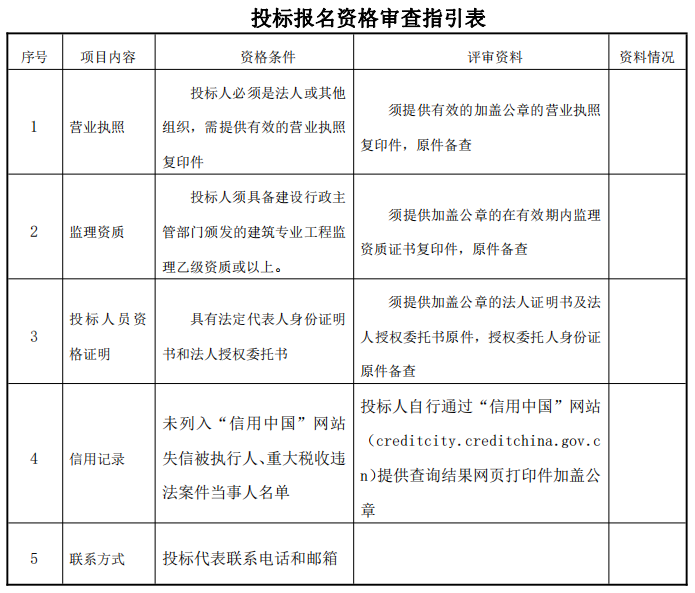 1.以上資格審查合格條件標(biāo)準(zhǔn)中如出現(xiàn)一處不符合要求,其投標(biāo)報(bào)名將不被接受;