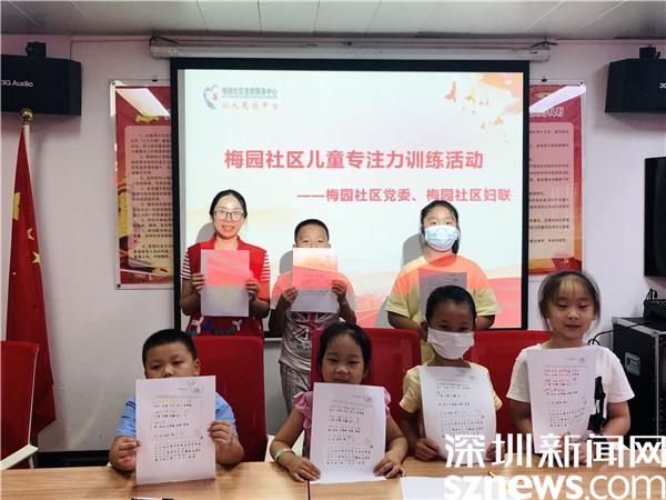 7月22日,深圳市羅湖區(qū)清水河街道梅園社區(qū)黨委、社區(qū)婦聯(lián)聯(lián)合深圳市東西方社工服務(wù)社駐梅園社區(qū)黨群服務(wù)中心的社工在紅崗大廈二樓多功能室,開(kāi)展兒童專注力訓(xùn)練活動(dòng),共吸引36人參與。