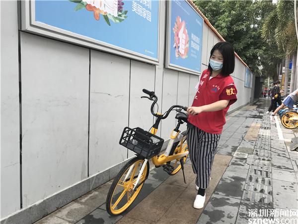 老圍社區(qū)共有55個共享單車點位,1500輛共享單車,每天有4、5千人次使用,利用率極高,同時也就存在亂擺放的情況。活動當天,志愿者們兩三人一組,對55個點位發(fā)起了攻擊,成人志愿者擺放單車,小小志愿者向騎單車的人發(fā)放《深圳市民文明手冊》,并及時提醒市民文明用車,文明停放。