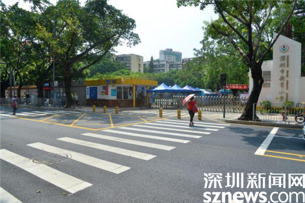 ▲校園門(mén)前的柏油路平坦順暢