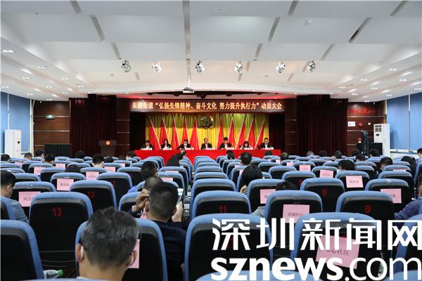 讀特客戶端·深圳新聞網(wǎng)2021年11月19日訊(記者 郭含笑 通訊員 黃貽凱)感恩奮進(jìn)跟黨走,緊鑼密鼓再出發(fā)。羅湖區(qū)第八次黨代會(huì)、區(qū)“兩會(huì)”的順利閉幕是一個(gè)結(jié)束,也是羅湖新征程、新使命、新奮斗的開始。為弘揚(yáng)羅湖光榮傳統(tǒng)、賡續(xù)羅湖血脈傳承,在街道全體黨員干部中形成憋足一口氣趕超奔跑、鉚足一股勁狠抓落實(shí)的風(fēng)氣,把先鋒精神、奮斗文化轉(zhuǎn)化為強(qiáng)大執(zhí)行力、踐行在奮斗新征程,11月19日下午,深圳市羅湖區(qū)東湖街道召開“弘揚(yáng)先鋒精神、奮斗文化 努力提升執(zhí)行力”動(dòng)員大會(huì)。街道黨工委書記程時(shí)菊等處級干部,各辦、中心全體在編人員,各社區(qū)黨委書記、副書記、副站長、城管專干共100余人參加會(huì)議。