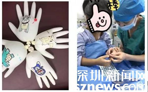 除了引進(jìn)玩具車,麻醉科手術(shù)室還同步上線了其他暖心舉措,在消毒手套上繪制患兒喜歡的卡通玩具、準(zhǔn)備符合院感要求的貼紙及小玩具......針對患兒術(shù)后復(fù)蘇觀察期,復(fù)蘇室的護(hù)士姐姐們還專門下載了動畫片放在iPad里,方便隨時觀看。