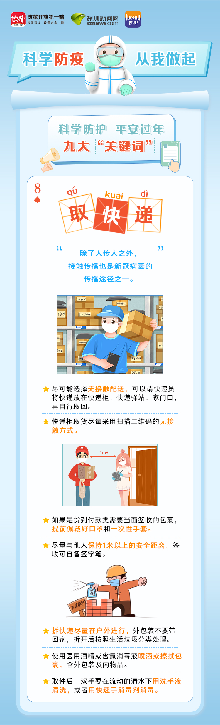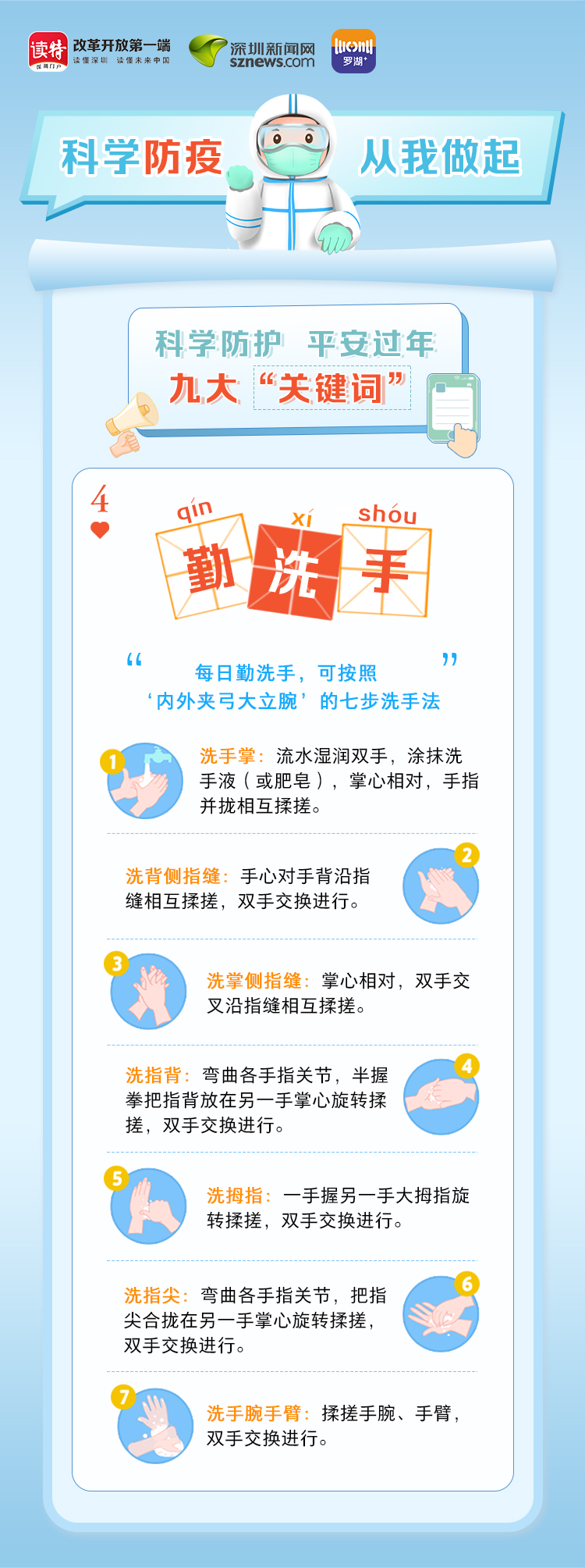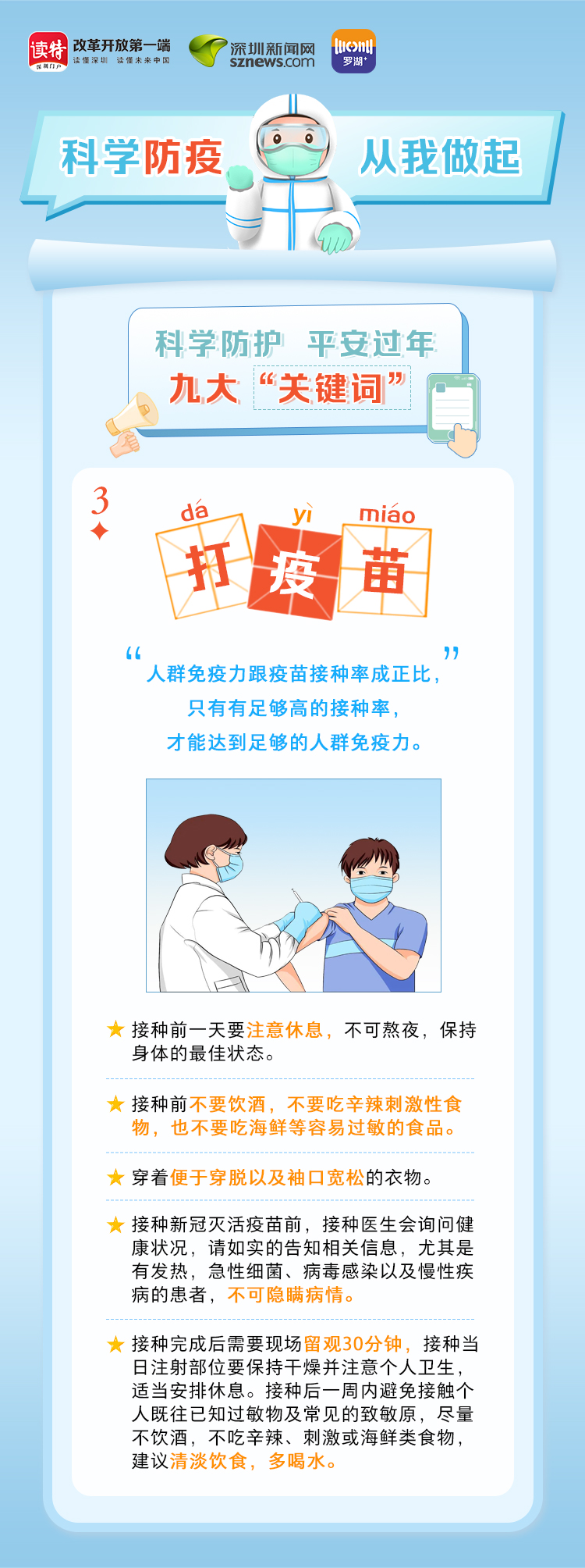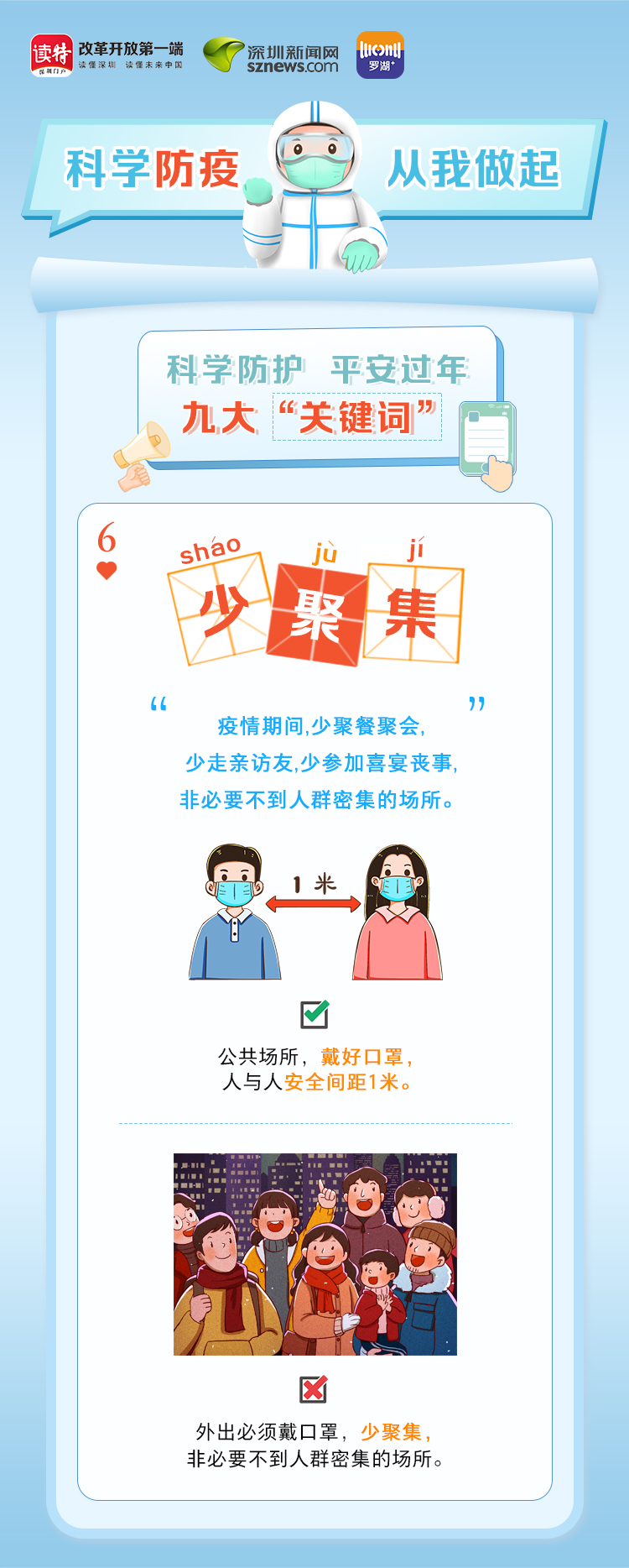 為更好地保護(hù)自己和他人的健康,度過(guò)一個(gè)祥和平安的春節(jié),請(qǐng)查收《科學(xué)防護(hù)平安過(guò)年九大“關(guān)鍵詞”》。在這場(chǎng)沒(méi)有硝煙的戰(zhàn)斗中,公安干警、醫(yī)護(hù)人員、社區(qū)工作者、志愿者始終堅(jiān)守在一線,齊心協(xié)力、眾志成城抗擊疫情。讓我們攜手并進(jìn),共同抗疫,采用科學(xué)有效的方式做好自身防護(hù),不僅對(duì)自己負(fù)責(zé),更是對(duì)家人負(fù)責(zé),對(duì)社會(huì)負(fù)責(zé)。