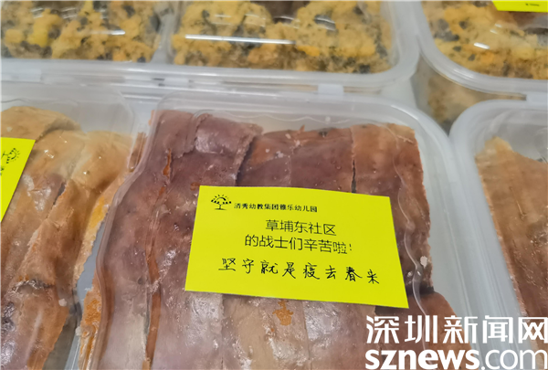 一腔熱忱,共克時(shí)艱。黨建引領(lǐng),筑起抗擊疫情的堅(jiān)固防線。在戰(zhàn)疫一線中,黨員先鋒勇戰(zhàn)疫,巾幗教師敢擔(dān)當(dāng)。教師志愿者積極發(fā)揚(yáng)“為人師表”的帶頭作用,用實(shí)際行動(dòng)彰顯教育人的精神,成為社區(qū)疫戰(zhàn)中的“硬核”擔(dān)當(dāng)。領(lǐng)隊(duì)老師劉小潔說(shuō),“大家激情滿懷,不喊累、不怕苦,能夠?yàn)榭箵粢咔槎κ且环莨鈽s與自豪!沒(méi)有一個(gè)冬天不可逾越,沒(méi)有一個(gè)春天不會(huì)來(lái)臨?!贝送?,老師們還為一線的抗疫戰(zhàn)士自制了暖心餐包,“草埔東社區(qū)的戰(zhàn)士們辛苦啦”“堅(jiān)守就是‘疫’去春來(lái)!”等暖心話語(yǔ)傳遞溫暖力量,匯聚勝利力量。