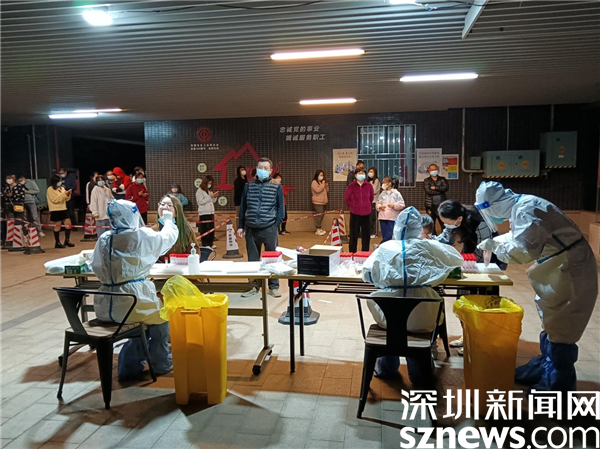 讀特客戶端·深圳新聞網2022年1月18日訊(記者 劉嘉敏 通訊員 楊紀歐)“放碼過來!”1月16日晚8點,在羅湖區(qū)桂園街道老圍花園五樓架空層的臨時檢測點,志愿者陳東紅在錄入區(qū)掃碼,十人一組,一一掃過、上傳,引導去采樣臺。忙碌中,他還不忘調侃,一句“放‘碼’過來!”既是幽默,也是宣戰(zhàn),是對疫情的宣戰(zhàn),是必勝的信念?,F(xiàn)場排隊的居民會心一笑,氣氛立刻輕松起來。這一天,陳東紅早上9點就上崗了,一直在禧程酒店臨時檢測點忙碌,晚上又轉戰(zhàn)在老圍花園五樓架空層的臨時檢測點。