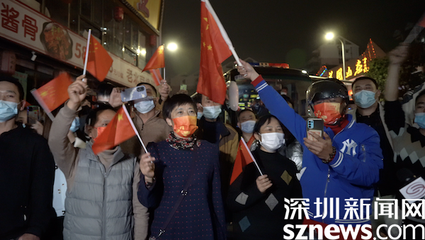 隨著“解封”時(shí)刻的臨近,現(xiàn)場氣氛高漲,封控區(qū)內(nèi)“深圳加油”的口號與封控區(qū)外“《我和我的祖國》大合唱”愈發(fā)嘹亮。